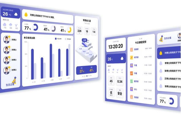 AI 智慧管理中心:智能考勤&排课、自动生成全园考勤报表、班级出勤率分析,结合AI预测进行智能排课优化资源。